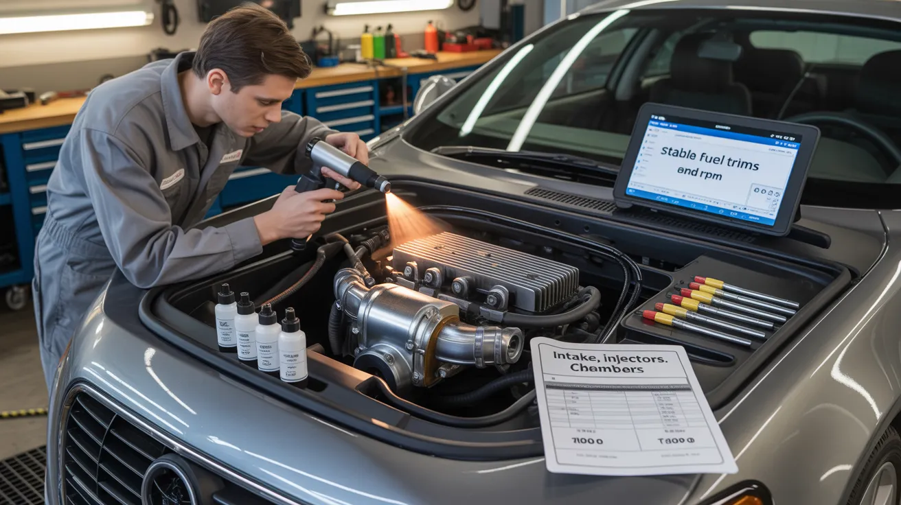Prior to any cleaning process, we link advanced scan tools to retrieve live data, fault codes, and system readiness. We'll provide you with a thorough visual inspection and targeted leak checks on vacuum, fuel, coolant, and oil systems. This allows us to pinpoint the root cause and adapt the cleaning to address what actually matters.